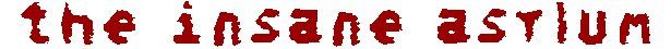 Welcome to the Insane Asylum! As you have probably noticed, all the stuff that's normally here is kinda... gone. Well, that's because for 2002 there's going to be a whole new IA group, along with some of the girls from last year. Check out the links and the IA board for more info and for how you can be in IA '02.